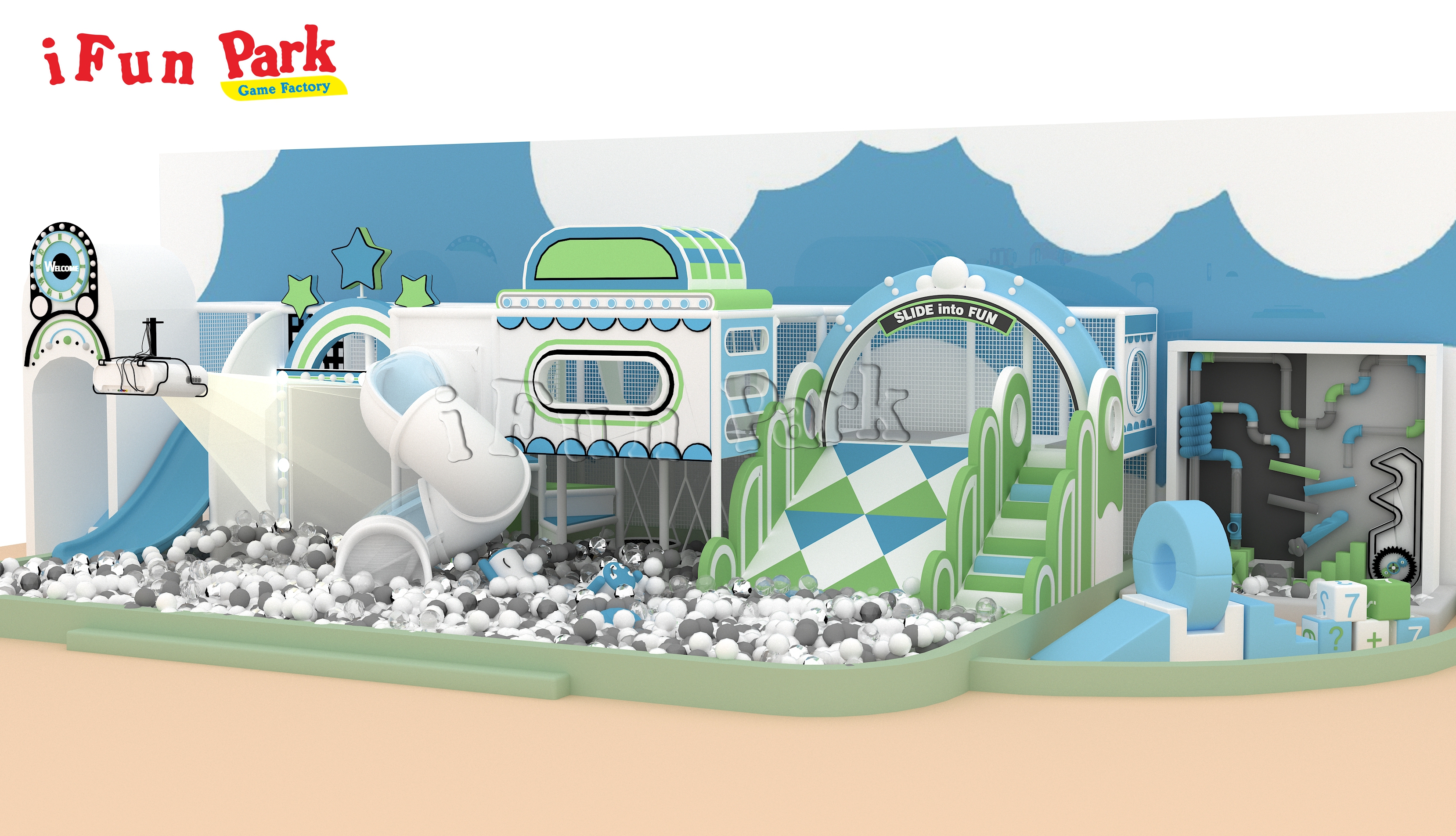 The green-white color scheme ensures brightness and clarity, bringing a natural and soothing feeling for kids to enjoy carefree playtime.